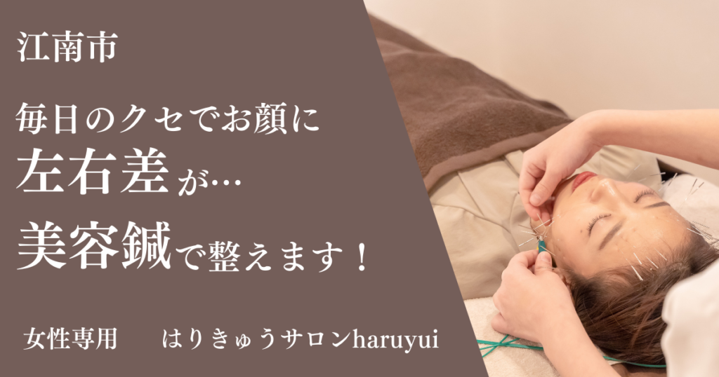 江南市周辺で美容鍼をお探しの方、顔の左右差やフェイスラインが気になる方は、ぜひ一度はりきゅうサロンharuyuiへご相談ください。